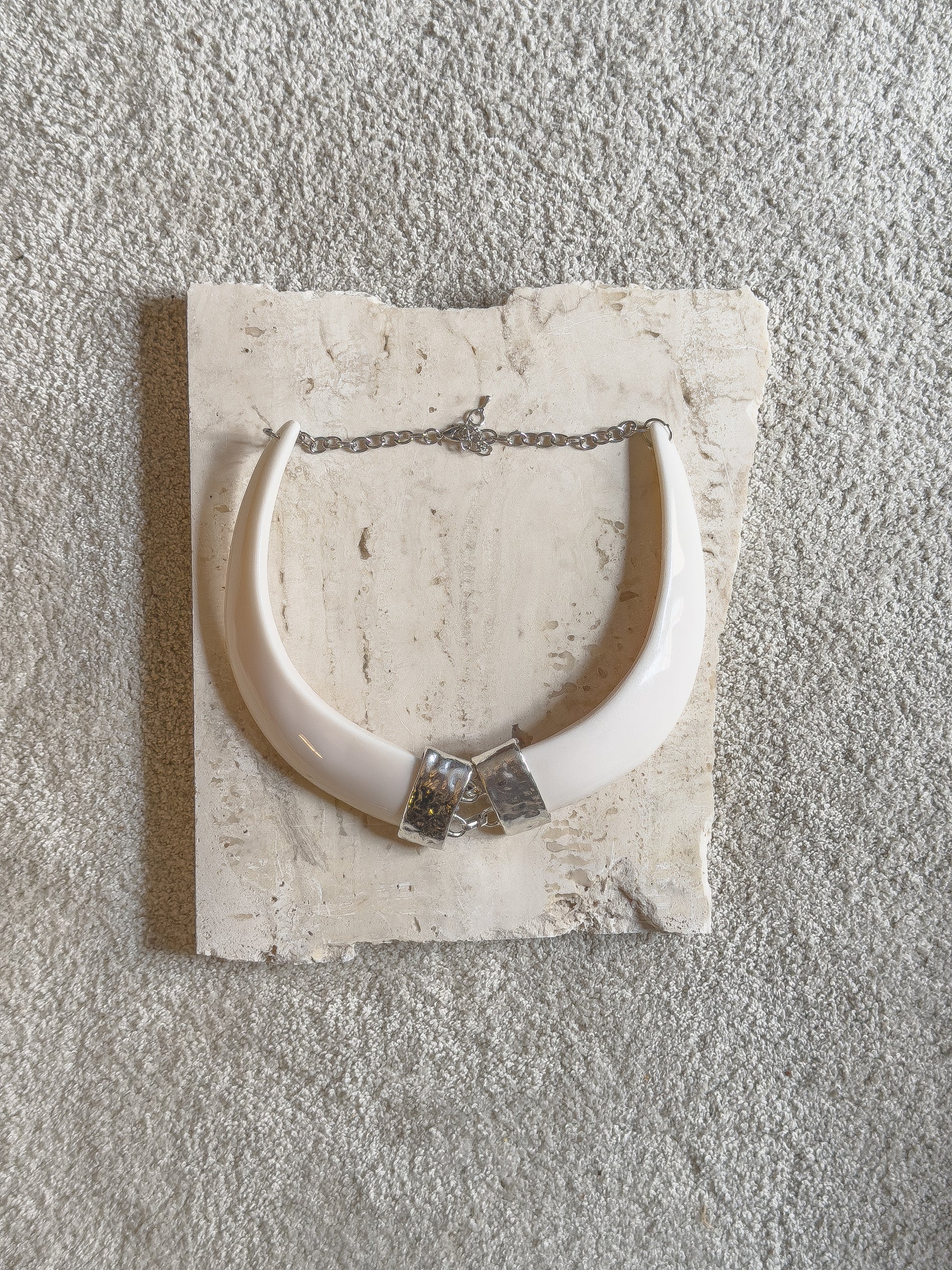 COLLAR DE ACERO Y SINTETICO IMITACIÓN MARFIL
