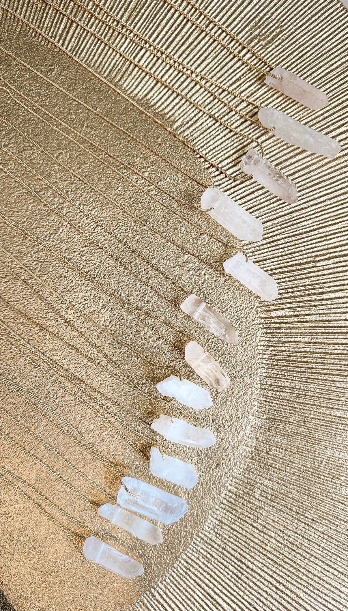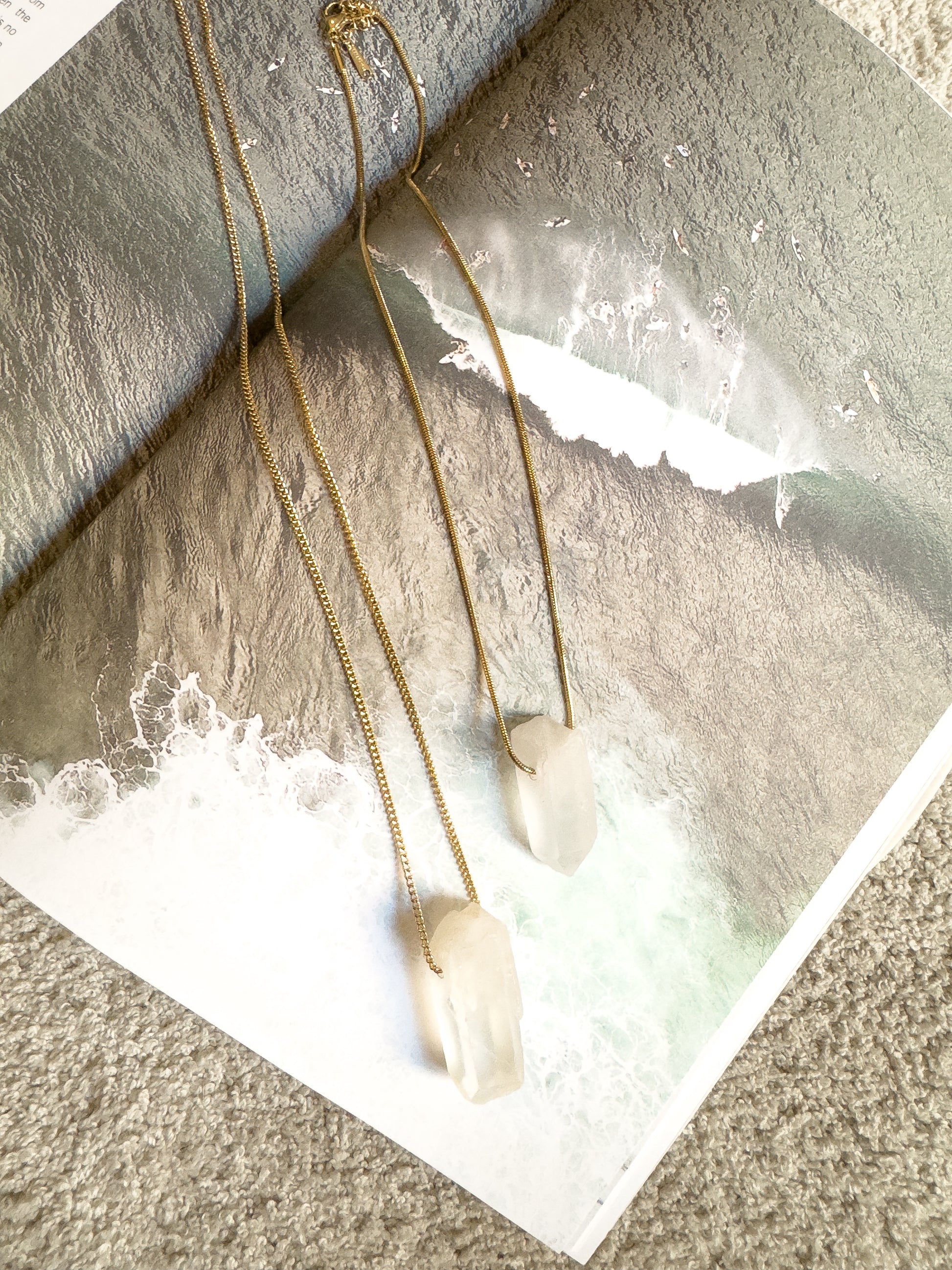 COLLAR DE ACERO Y PIEDRA NATURAL QUARZO BLANCO
