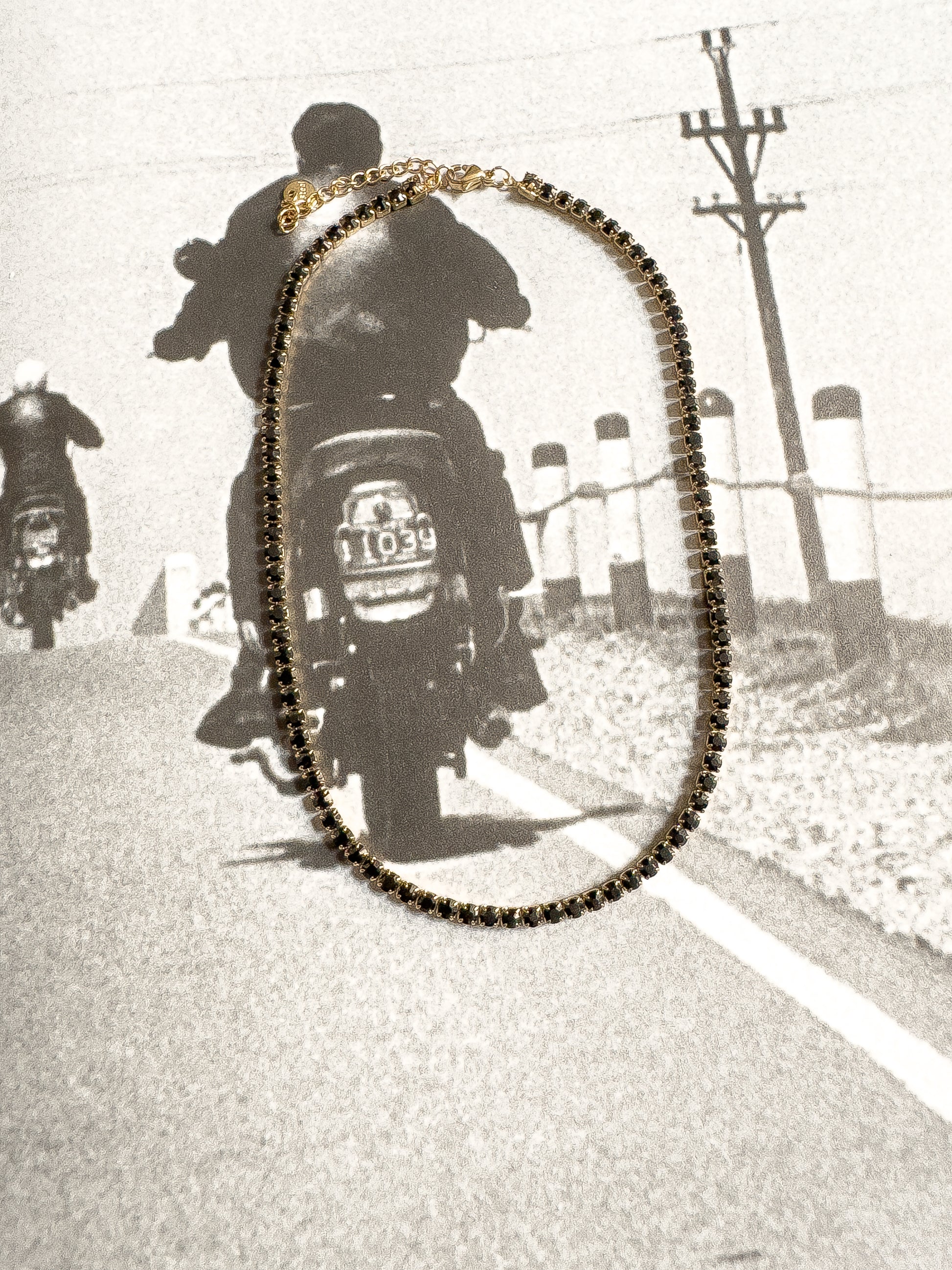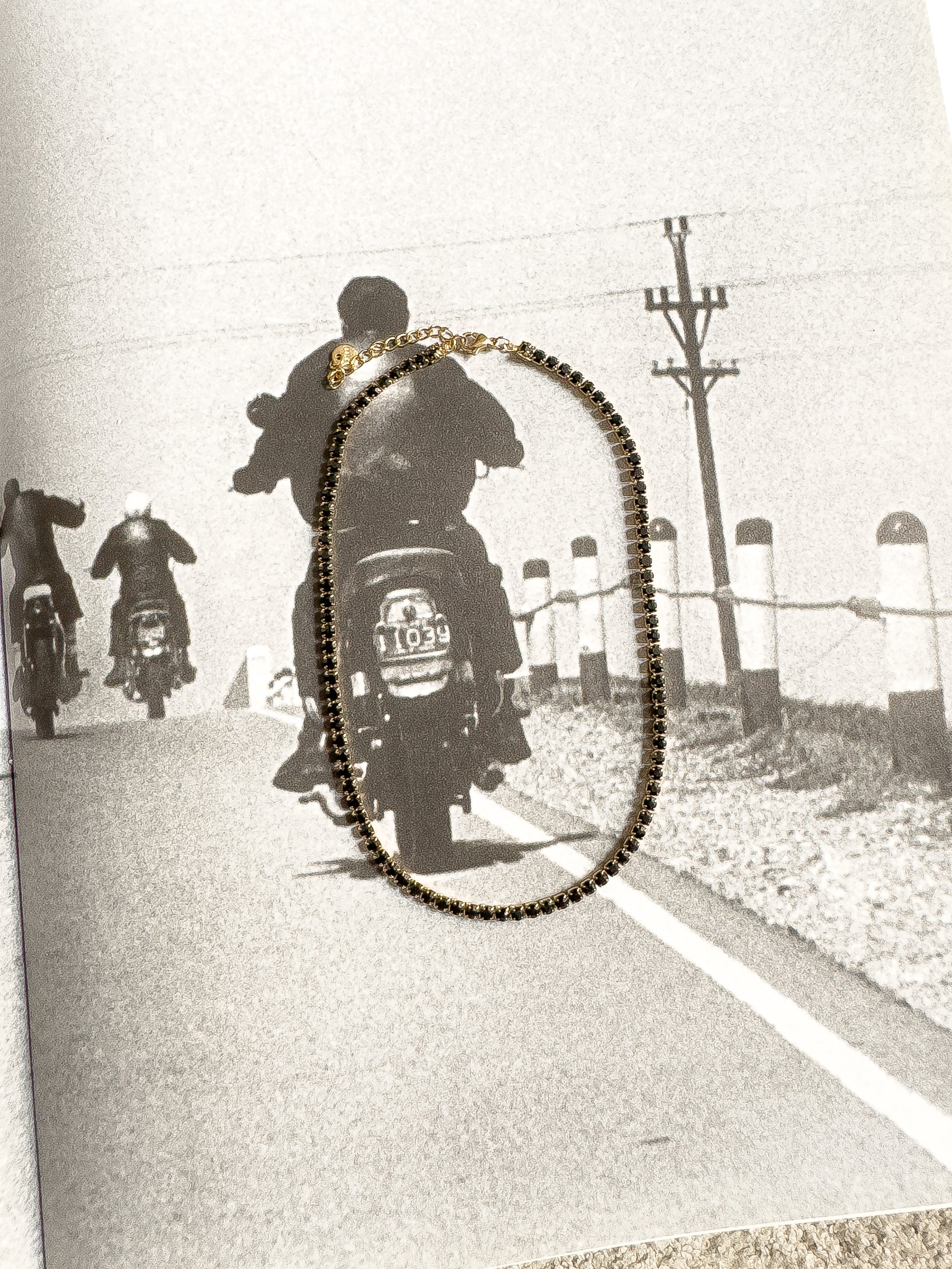 COLLAR GARGANTILLA CON CRISTALES EN VERDE , BLANCO Y NEGRO